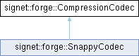 uncompressed_size; a mismatch between actual and expected sizes is treated as corruption. Implemented in signet::forge::SnappyCodec.