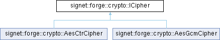 Implemented in signet::forge::crypto::AesGcmCipher, and signet::forge::crypto::AesCtrCipher.